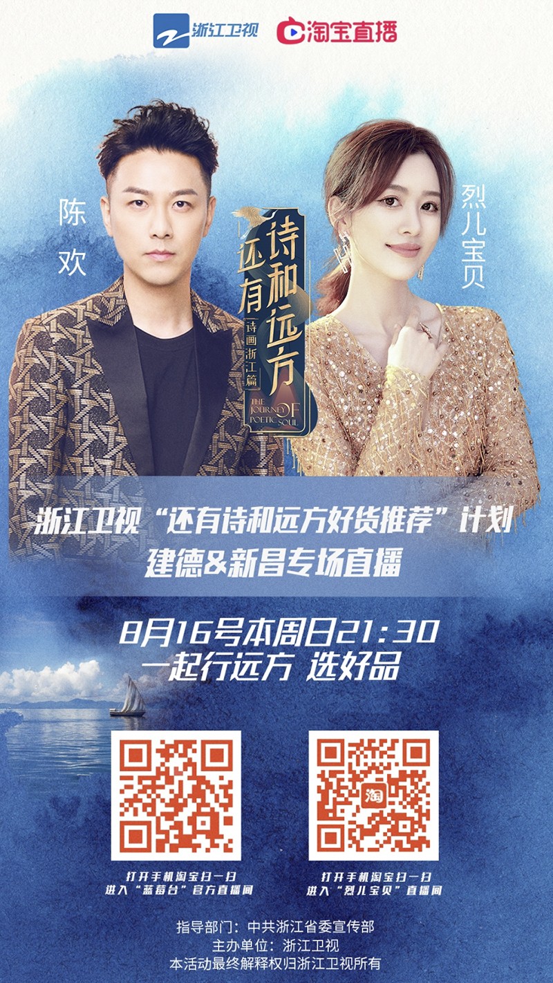 本周日(8月16日)晚21:30,浙江衛視《還有詩和遠方·詩畫浙江篇》"好貨推薦計劃"新昌&建德專場直播同步開啟!浙江衛視主持人陳歡 & 寶藏姐姐烈兒寶貝為你推薦《還有詩和遠方》拍攝地爆款好物!當然就有萬豐集團旗下生產的飛機啦,動動手指就能秒殺節目同款!