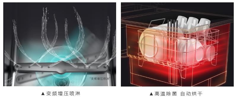 北斗星V60洗碗機,采用的是創(chuàng)新變頻增壓噴淋,立體包圍式強流勁水,再加上75℃高溫沖洗,對碗具進行無死角噴刷,強效去污,高溫除菌。洗碗過后還能自動烘干,自動開門透氣,碗內(nèi)沒有水珠殘留,避免滋生細菌,拒絕二次污染,碗筷用起來潔凈更安心。