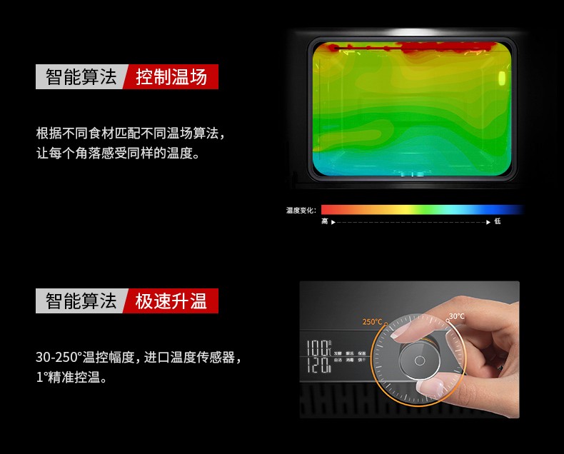 還能開啟“熾熱烘焙”模式,還能烘焙多種蛋糕、甜點等,智能算法極速升溫,30-250°溫控幅度,1°精準控溫,可根據(jù)自己口味需求調(diào)控,一鍵變身烘焙達人。