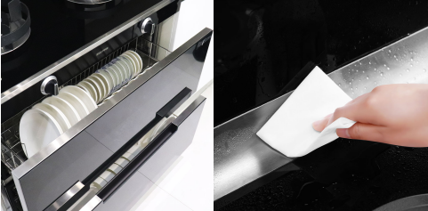 餐后清潔也很輕松,集成灶臺(tái)面通體是由一整塊鋼板制作而成的,無縫臺(tái)面一擦即凈,輕松快捷。收拾完廚房,還能對(duì)餐具進(jìn)行全方位消毒,日常用餐更為衛(wèi)生健康。