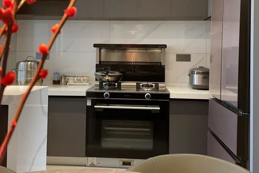丁工的新家是開放式廚房,減去了隔斷,讓空間變得更加寬敞。還可以共享客廳空調,夏天下廚也不怕熱,更營造出開放式的烹飪就餐環境,家人也能參與到烹飪中來。