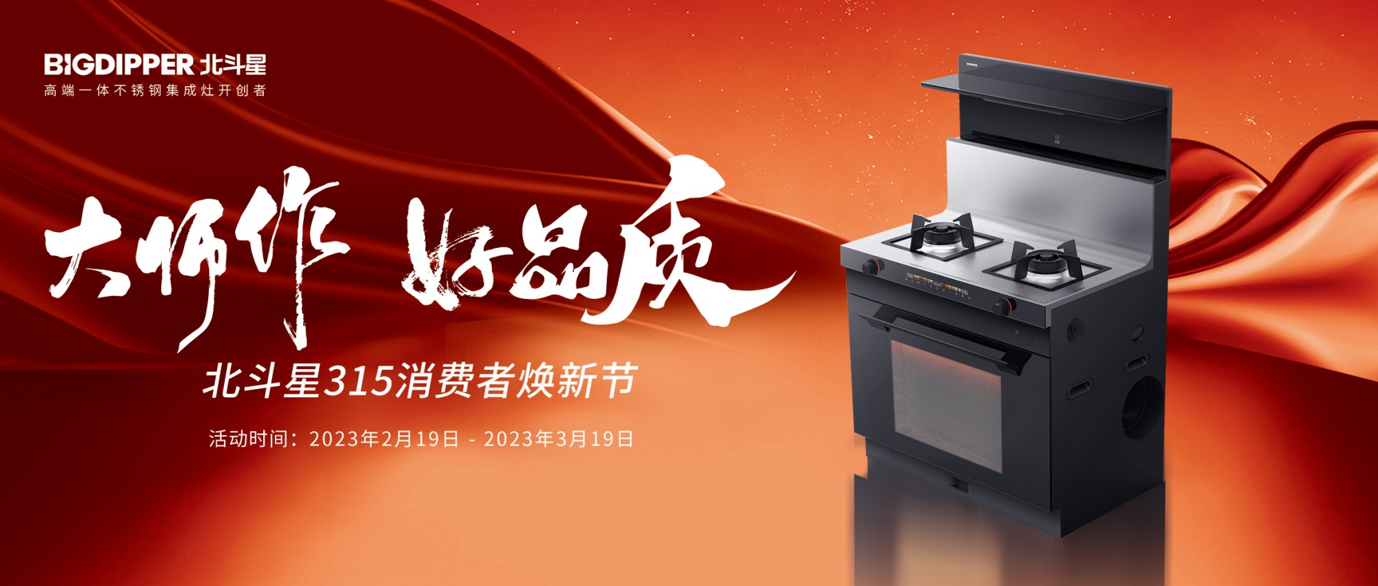 2月19日-3月19日,北斗星315消費(fèi)者煥新節(jié)來(lái)啦!大師作 好品質(zhì),get 你家的實(shí)力&顏值并存新廚房。此次北斗星315消費(fèi)者煥新節(jié),有哪些看點(diǎn)?讓我們一睹為快吧