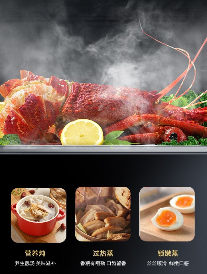 同時(shí),采用2.0kW雙孔蒸汽直噴技術(shù),循環(huán)新鮮活水,過飽和蒸汽鎖住食物本味,高溫水分子穿透食物內(nèi)層,受熱更均勻,鎖嫩更美味。