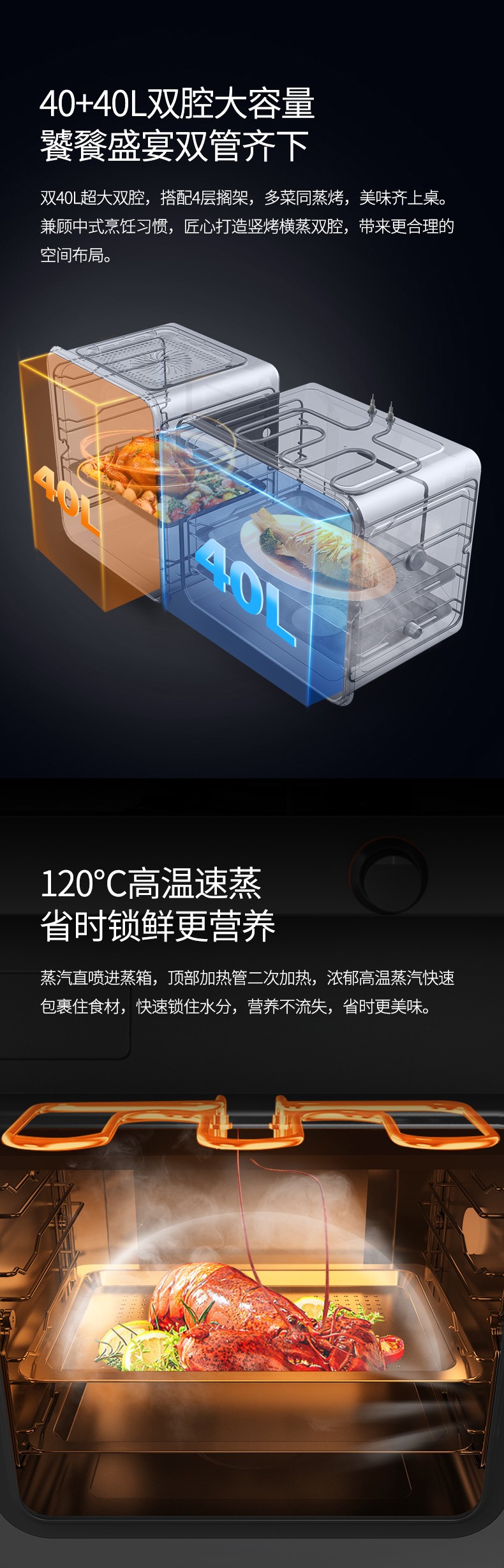 40+40L雙腔大容量,饕餮盛宴雙管齊下