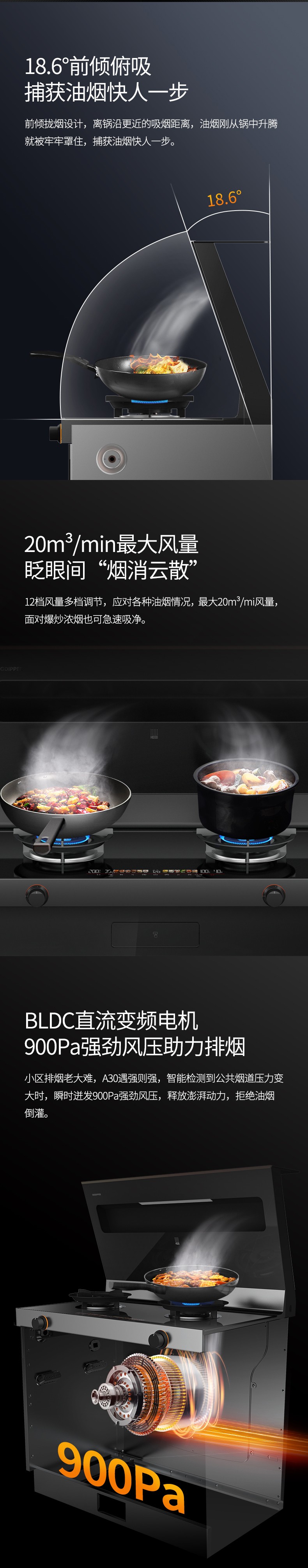 BLDC直流變頻電機(jī)900Pa強(qiáng)勁風(fēng)壓助力排煙